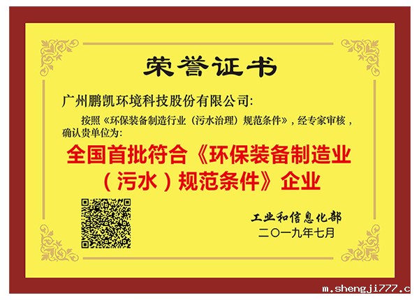 全国首批符合《环保装备制造业(污水)规范条件》企业