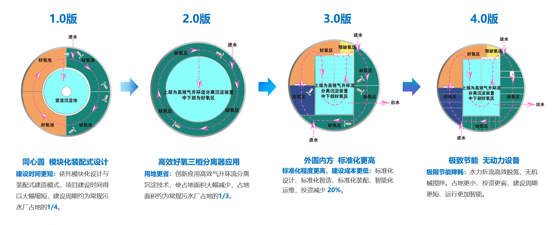 鹏凯圆-低碳高效悠米直播nba凭借占地面积小、投资省、建设周期短、能耗低、运营智能等综合优势,已广泛应用于城镇污水厂的新建、扩建、提标,工业污水处理(工业园区、屠宰、食品饮料、发酵酿造、垃圾渗滤液处理及生产回用水等行业),农业面源污染治理等多个领域,为水环境治理和资源循环利用提供了创新性解决方案,有力推动了污水处理设施向高效集约、绿色低碳、低成本、智能化创新发展。