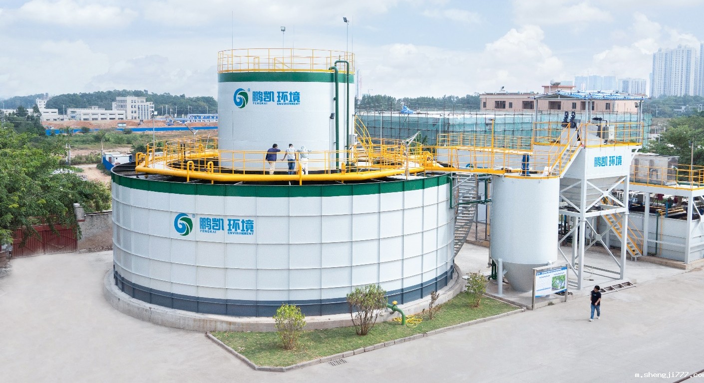 建设规模1000m³/d中和废水处理系统采用具有成熟经验的“集水池+隔油池+气浮池+调节池+一体化水解酸化+鹏凯圆(循环升流式同步短程硝化 一 反硝化水处理集成系统,内含厌氧段+缺氧段+好氧段+澄清段)+物化沉淀+消毒装置”的工艺流程,保证出水稳定达标排放。项目出水执行广东省地方标准《水污染物排放限值》(DB44/26-2001)中的第二时段一级标准。