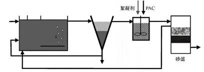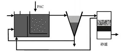 方式一工艺最简单,投资费用最低,后续滤池的设置可以保证出水水质,降低 PAC 流失,但这种工艺的 PAC投加量最高;